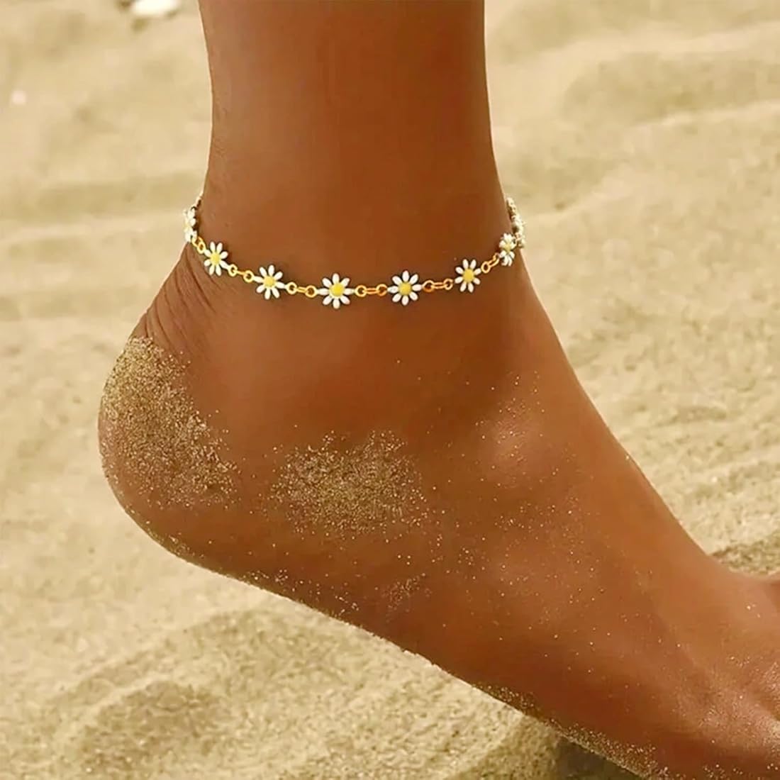Decorated with delicate floral charms, this anklet adds a cute and feminine vibe to your look. The polished gold finish enhances its elegance, while the small hanging charms create graceful movement. Ideal for young women and girls who love stylish and trendy jewelry.