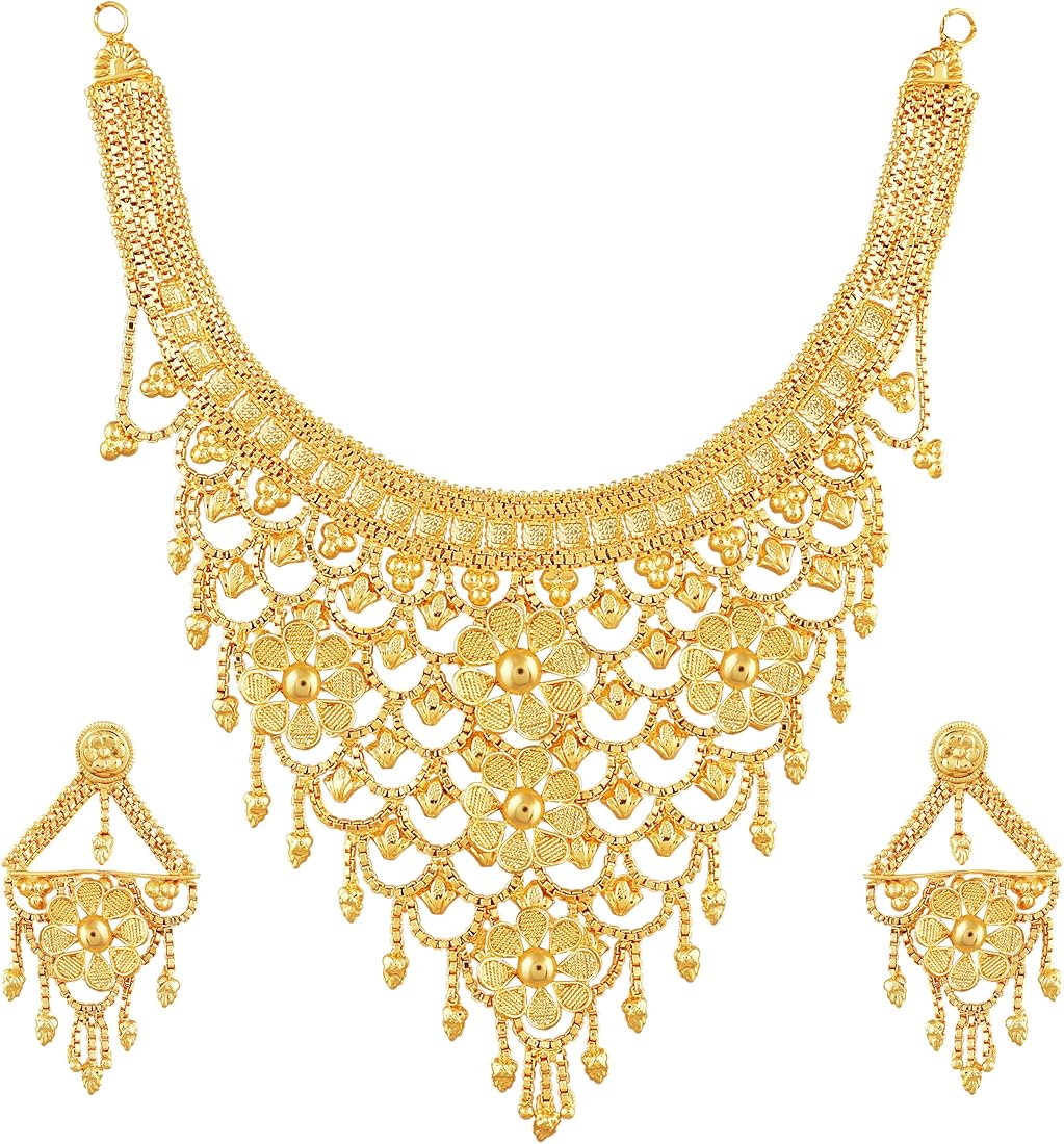 & Free ShippingTrendy floral choker necklace with premium gold polish, perfect for ethnic and festive wear.